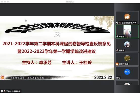 资深教师王桂玲作了题为《2021-2022学年第二学期本科课程试卷督导检查反馈意见暨2022-2023学年第一学期学院改进建议》的专题报告。王老师依据52书库