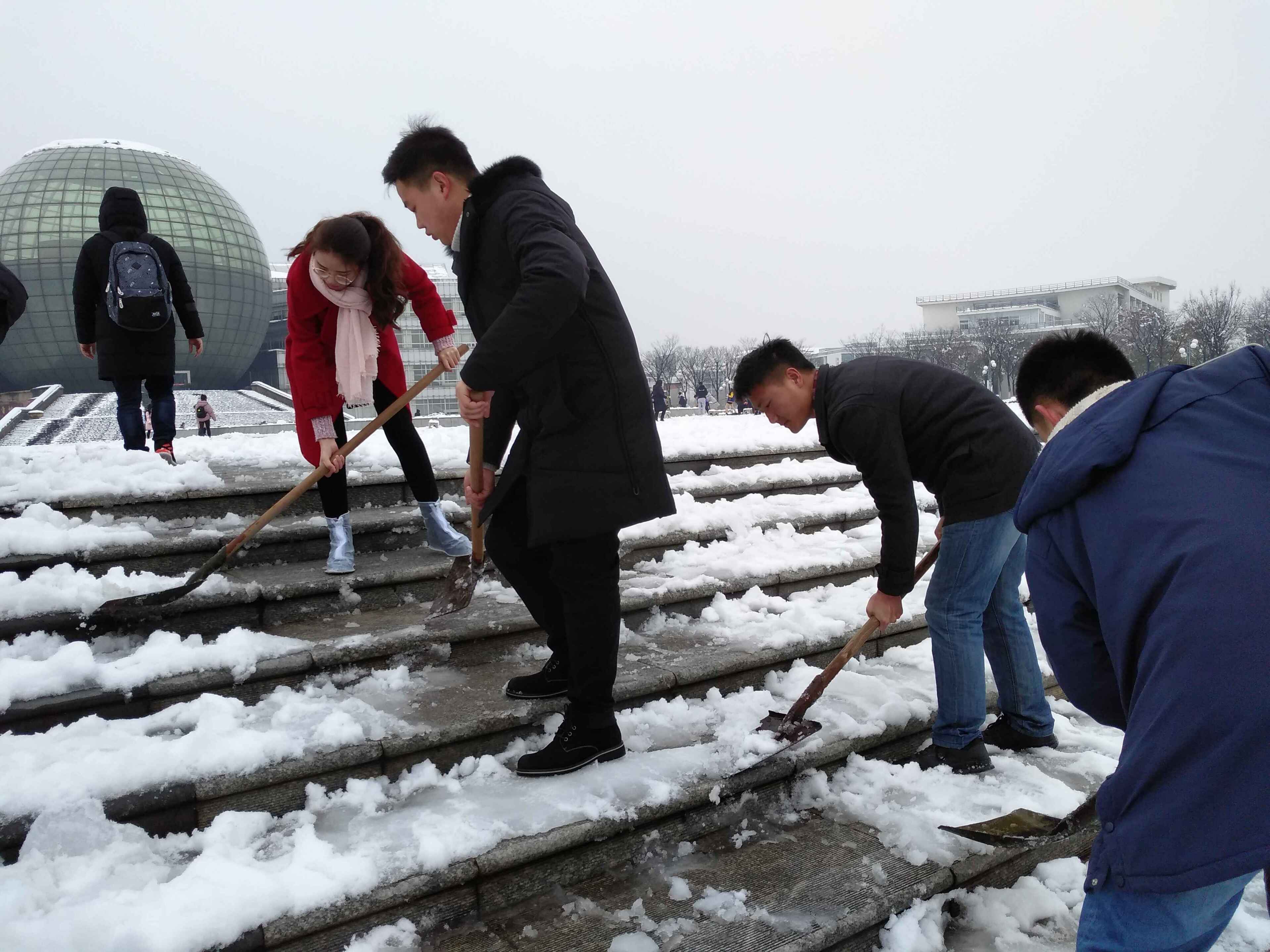 1月3日,南京迎来了2018年的第一场雪,雪花虽然让人们感到欣喜,但也导致道路积雪较多,给我校师生的出行活动带来了诸多不便。为了保证我校师生的出行安全,于1月5号中午12点30分,52书库