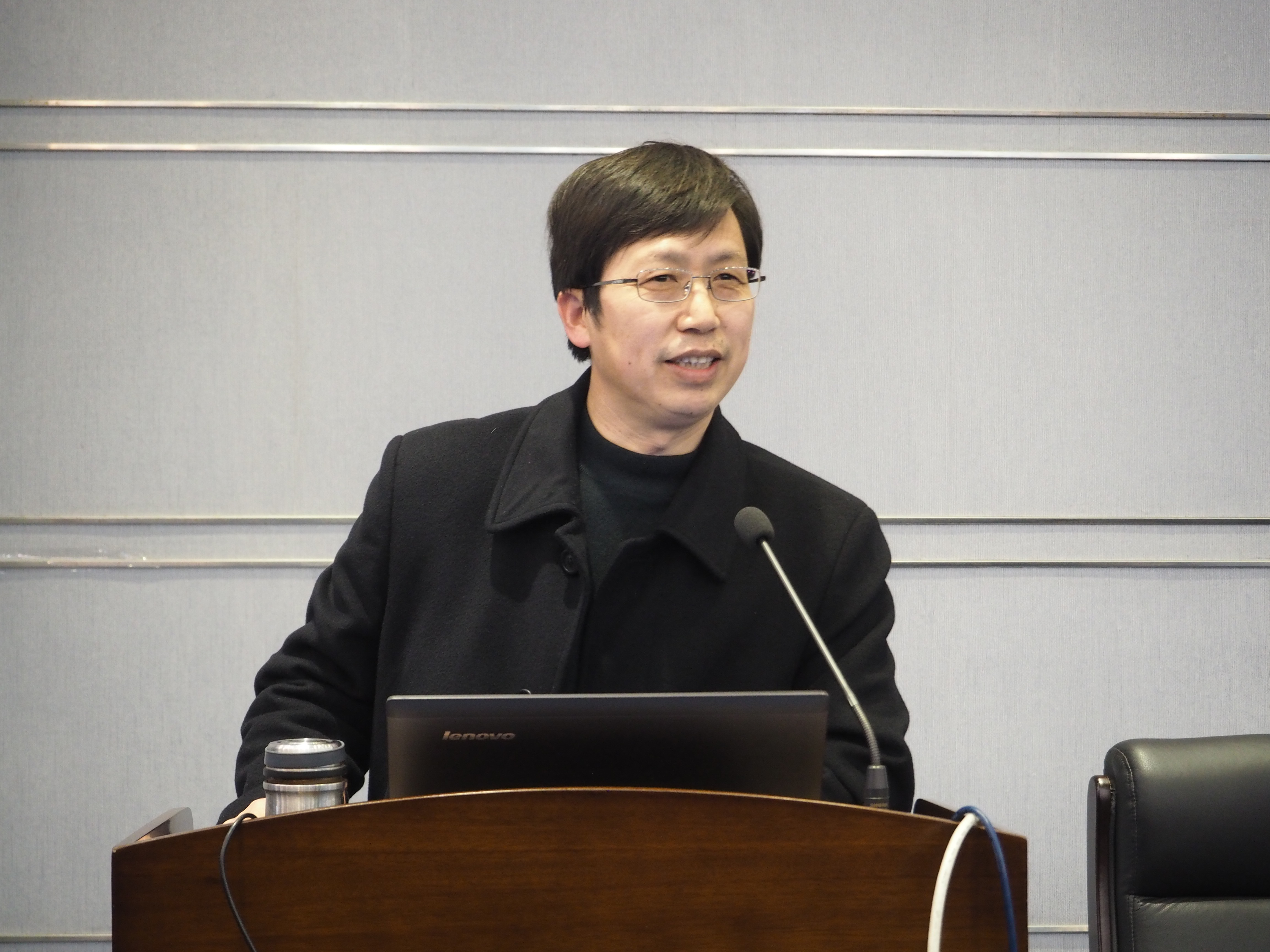 部分教师和全体研究生参加报告会,报告会由副院长(主持工作)耿步健主持。
