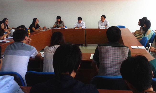 随后,副院长茆素琼分别就2012级研究生毕业论文的阶段性要求和2013级研究生开题报告的准备做了具体的安排。要求2012级研究生于9月10日前将正在进行的论文初稿,交一份给自己的导师,交一份给学院的陶蓉老师,以便于导师和学院相关负责人了解毕业论文的进度。茆院长指出,学院将于10月底至11月初进行论文预答辩,正式答辩将于元旦前后进行。她希望2012级学生要高度重视毕业论文的撰写质量,不管从内容上还是形式上都要做到严谨、细致、到位和完全符合毕业论文的要求。对于2013级研究生,茆院长提出每个同学从现在起都要认真做好准备,要早一点确定好选题,选题要尽量与导师的学科研究方向一致,在选题过程中要跟导师进行认真的协商,学院也将于2015年元旦前后进行2013级研究生的毕业论文开题,还强调中期考核不合格的研究生将不能参加毕业论文的开题。