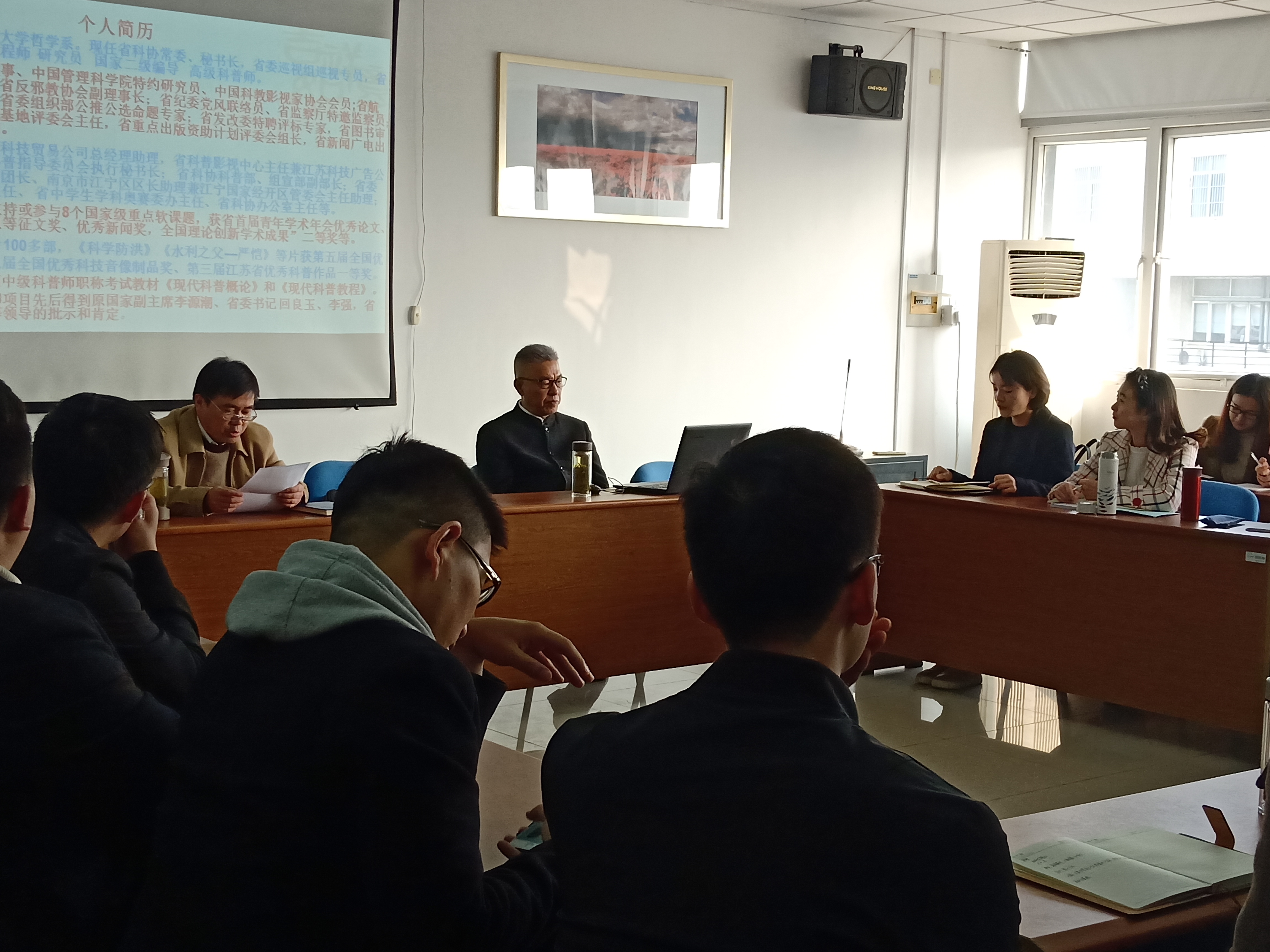 周研究员的讲座包括认识社会和科学定位、对创新创业的认识以及个人建议等三个方面。他指出,创新创业是时代的趋势,江苏省的“双创”行动正在路上;作为新时代的研究生,要充分了解国家政策、社会趋势、顺应时代潮流,做新时代的建设者。接着,周研究员从科学教育入手,强调教育是要为未来负责,要注重人才的培养。他指出,当今时代人才是第一资源、教育是第一基础,要注重激活人才内在要求、营造人才发展氛围、实现人才社会价值。他还从实践出发,用一个个鲜活生动的案例展示了创业应具备的思维和精神。另外,周研究员还结合自己的人生经历,跟同学们分享了他的创新创业感悟:第一,突破自身疆域、开放自我,“童心”向世界;第二,主动识变应变求变,赢在转折点;第三,懂得思想就是创造力,要有大局观;第四,开拓创造力经济,要有平台观;第五,明确工作总定位、把准工作着力点和路径。最后,周研究员给在座的全体同学提出了“双创”建议:一要有大局观、平台观和品牌观;二要懂业务、善策划,会整合;三要提升引领力、服务力、凝聚力和创新力;四要有信心、有梦想,做最优秀的自己。
