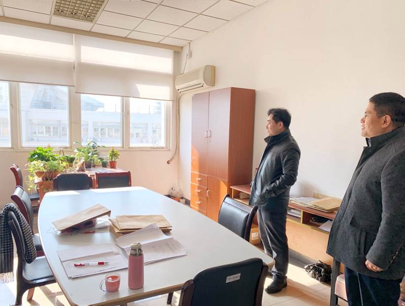 院长梅景辉,党总支书记陈翔和相关人员成立安全检查组对学院办公区域、办公室、教研室、教师工作室进行了详细的安全检查,了解相关问题。