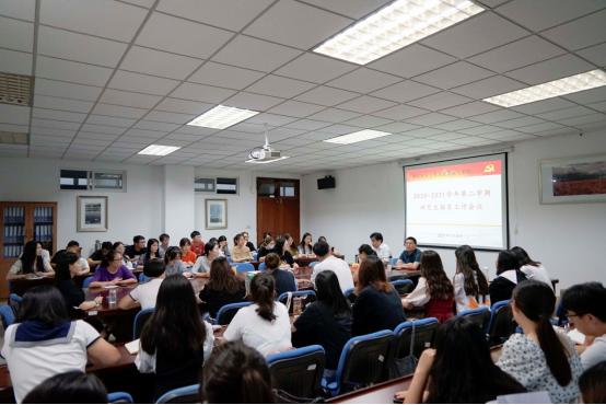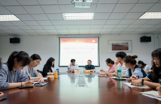 在德正楼508会议室召开2020-2021学年第二学期研究生期末工作会议。院长梅景辉教授、党总支书陈翔副教授、研究生秘书陶蓉老师以及全体研究生参加了会议。会议由梅景辉院长主持。