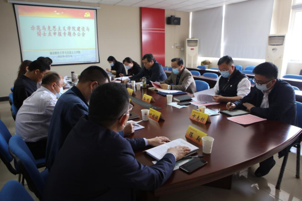 的建设及发展提出殷切期望:一是要坚持守正创新。引导广大师生静心读原著、学原文、悟原理,对马克思主义真学、真信、真懂、真用,掌握用马克思主义立场、观点、方法分析问题和解决问题的本领。二是要坚持突出特色。要立足学校的“财经底色”“粮食特色”,深入凝练学院教学及科研特色;将思政教育与财经类专业人才的人文素质培养相结合,做足人才培养大文章。三是要坚持交叉融合。要以马克思主义为指导,在促进学科交叉融合中不断深化中国特色社会主义理论体系研究;要深入推进党史学习教育常态化长效化,将思政教育与学校文化建设相融合,在讲好党领导百年粮食改革发展史、党领导经济建设史的过程中,实现理论学习的入脑入心。四是要坚持重点突破。“有为才会有位,有位更要有为”,学院班子要清醒地认识到当前学院建设面临的机遇与挑战,把握好当前马克思主义学科发展面临的良好外部环境,把握好下一轮博士点申报的有利现实机遇,做好规划、倒排工期,带领学院广大师生凝心聚力、务实进取,全面加强学院学科建设、教育教学、队伍建设、人才培养等各项工作,在江苏高水平大学新征程中展现出新的更大作为,以扎实的学院建设成效,迎接党的二十大胜利召开。