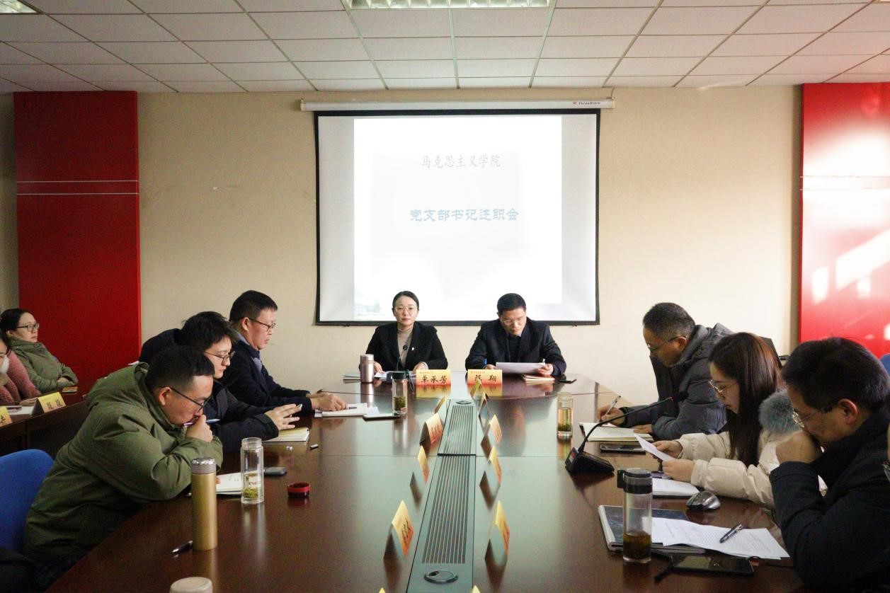 基层党支部换届的批复。同时,陈翔书记围绕师德师风问题、课堂授课纪律、研究生就业问题、社会培训服务工作等提出具体要求。刘希刚副院长汇报了学院期末本科生教学工作安排,并对规范出题、规范监考、规范阅卷、材料归档等提出详细要求。王敏光副院长汇报了本年度学院国家社科基金立项情况以及学院社会服务工作进展情况,并对2024年课题申报、高质量论文发表等提出建议。院长助理范渊凯围绕研究生就业、研究生毕业论文开题答辩等具体工作做了说明。