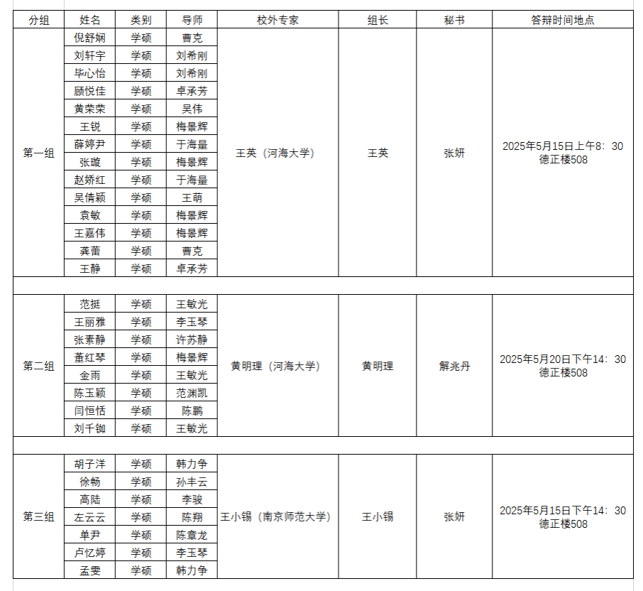2025届硕士研究生学位论文答辩公告
