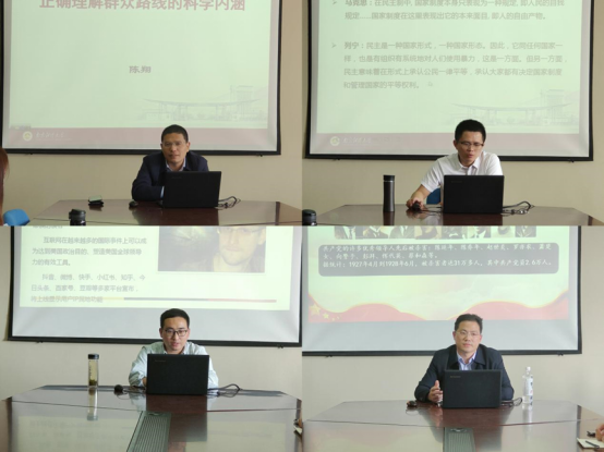 朱中博老师以“西方民主神话的破产”为题,从“西方民主遭遇危机”切入,强调“超越西方,回归民主本质”的重要性。中国共产党坚持人民至上,发展全过程人民民主。全过程人民民主与西方的自由民主有本质不同,具有鲜明的中国特色和不可取代的中国优势,是社会主义民主政治的本质属性,是最广泛、最真实、最管用的民主。
