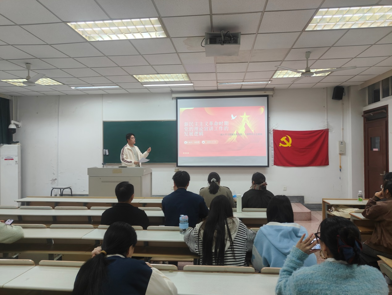 会上,尚浩然同志围绕学习贯彻党的二十届四中全会精神,结合党的理论宣讲工作发展脉络展开系统领学。他从建党前夕理论宣讲的传统承继切入,依次梳理大革命时期宣讲工作的初步发展、土地革命战争时期理论宣讲的赋能效应、全民族抗战时期理论宣讲形塑中流砥柱的历程及解放战争时期政策宣讲的基础性地位,指出党的理论宣讲始终是凝聚人心、汇聚力量的重要法宝,这与党的二十届四中全会“强化思想引领、凝聚奋进合力”的要求高度契合,通过历史维度的层层剖析,帮助党员们从理论宣讲的传承与发展中深化对二十届四中全会精神的理解,切实把思想和行动统一到党中央决策部署上来。