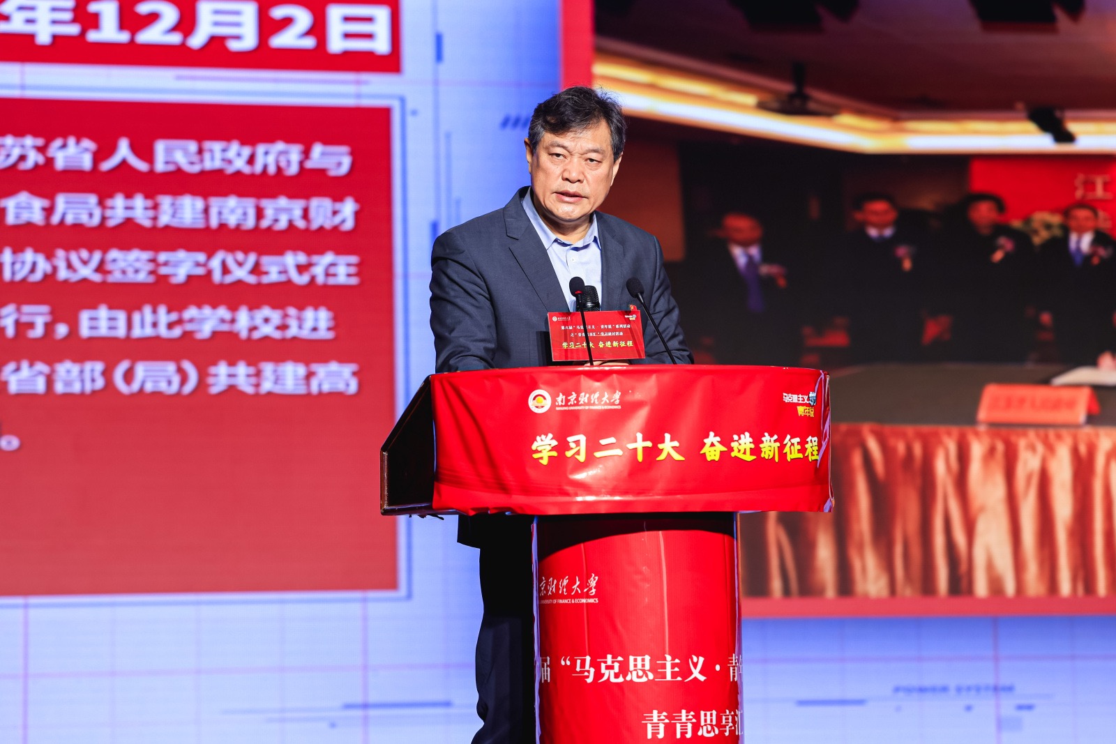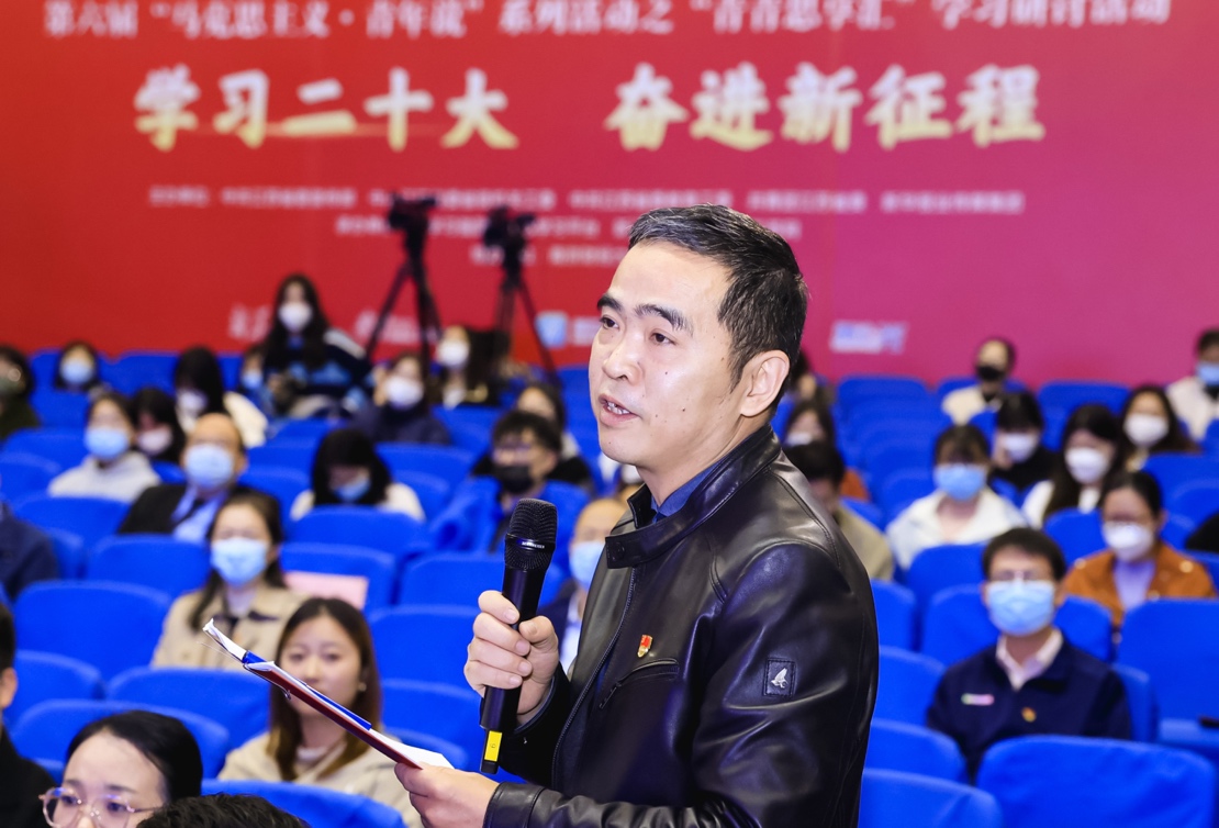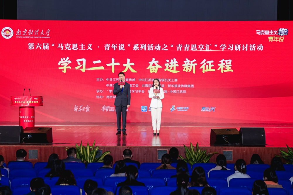 1118日上午,以学习二十大,奋进新征程为主题的第六届“马克思主义•青年说”系列活动之青春思想汇学习研讨活动在我校大学生活动中心成功举办。省纪委监委驻省委宣传部纪检监察组组长黄华,省委教育工委副书记、省教育厅党组成员徐子敏,新华日报社党委委员、副总编辑、中国江苏网董事长、总编辑陆峰,我校党委副书记(正校级)温潘亚教授,省教育厅社政处处长赵玉蓉,副处长邹燕、薄其芳,共青团江苏省委高校部部长付建龙,省委宣传部理论处副处长李向阳,南京大学52书库 院长胡大平教授、南京航空航天大学52书库 党委书记徐川教授、副院长何畏教授,中国矿业大学52书库 院长亓光教授,江南大学52书库 唐忠宝教授,南京大学52书库 院长助理张明副教授,南京师范大学52书库 王磊副教授,我校党校办、党委宣传部、校团委和52书库 等单位负责人出席活动,52书库 全体师生参加此次活动。本次活动由中共江苏省委宣传部、中共江苏省委省级机关工委、中共江苏省委教育工委、共青团江苏省委和新华报业传媒集团共同主办,学习强国江苏学习平台、新江苏客户端中国江苏网承办,52书库 协办。