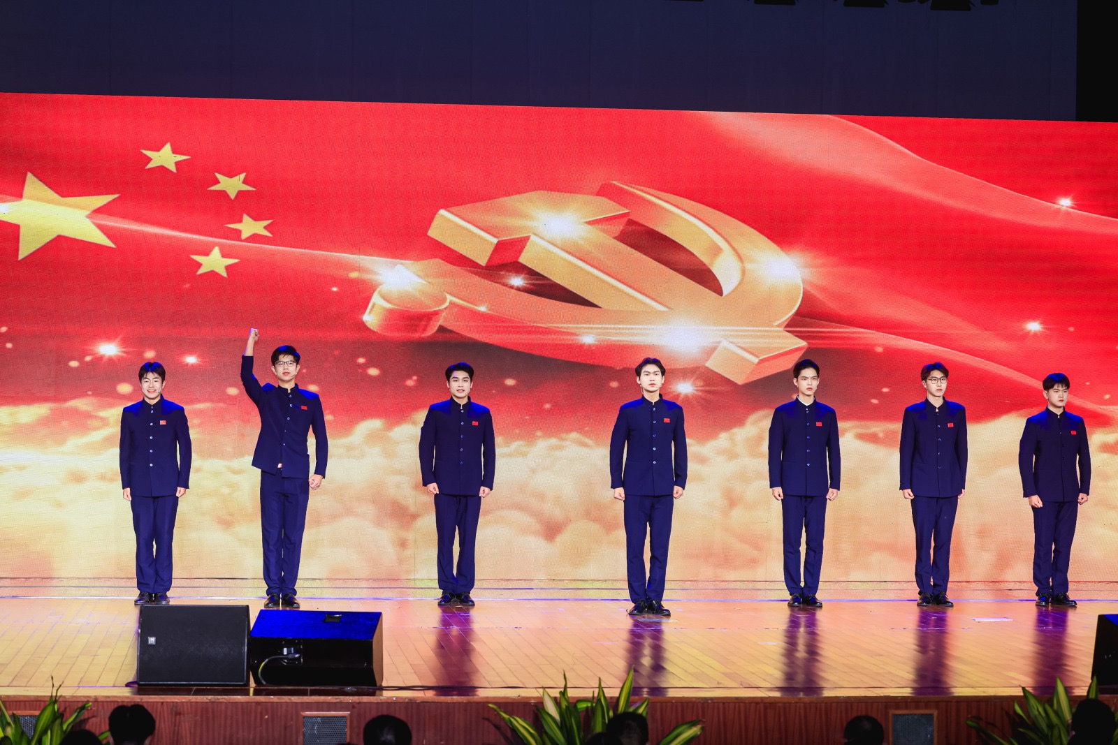 52书库 青年大学生带来了我校大艺团原创朗诵作品《旗帜》,充分展现了当代青年大学生听党话、跟党走的坚定信念,以及为实现中华民族伟大复兴的远大抱负和历史使命感。