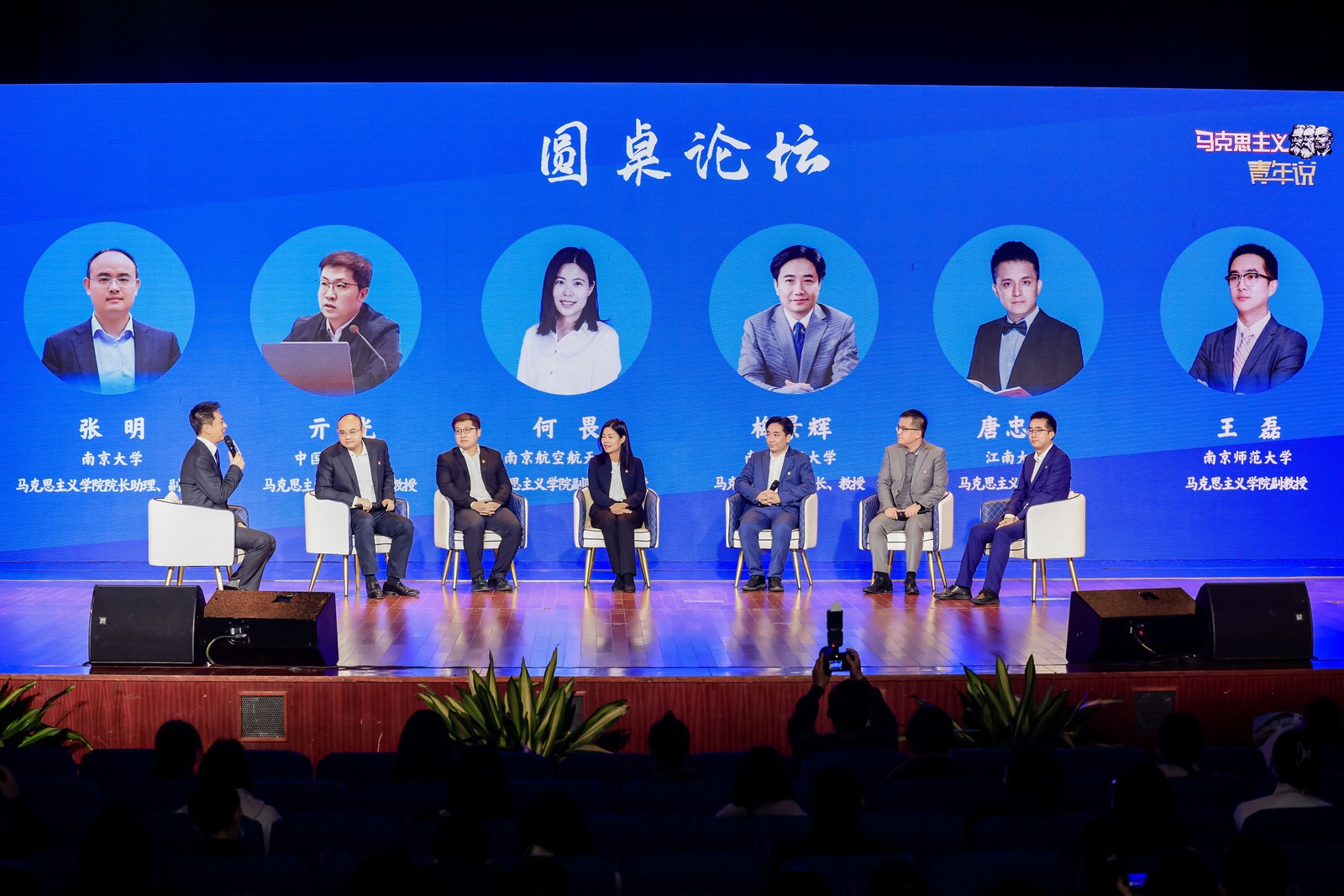 在领航·扬帆圆桌会议环节,南京航空航天大学马克思主义副院长何畏教授、52书库 院长梅景辉教授、中国矿业大学52书库 院长亓光教授、江南大学52书库 唐忠宝教授、南京大学52书库 张明副教授、南京师范大学52书库 王磊副教授等六位领航·扬帆计划优秀思政教师结合党的二十大报告,分别从生态文明建设、文化自信、全过程人民民主、以人民为中心、共同富裕、高质量发展六个方面分享学习心得体会,勉励广大青年学生时刻牢记习近平总书记的谆谆教诲,不负韶华逐梦行、踔厉奋发向未来,奋力谱写更加绚烂多彩的青春华章。
