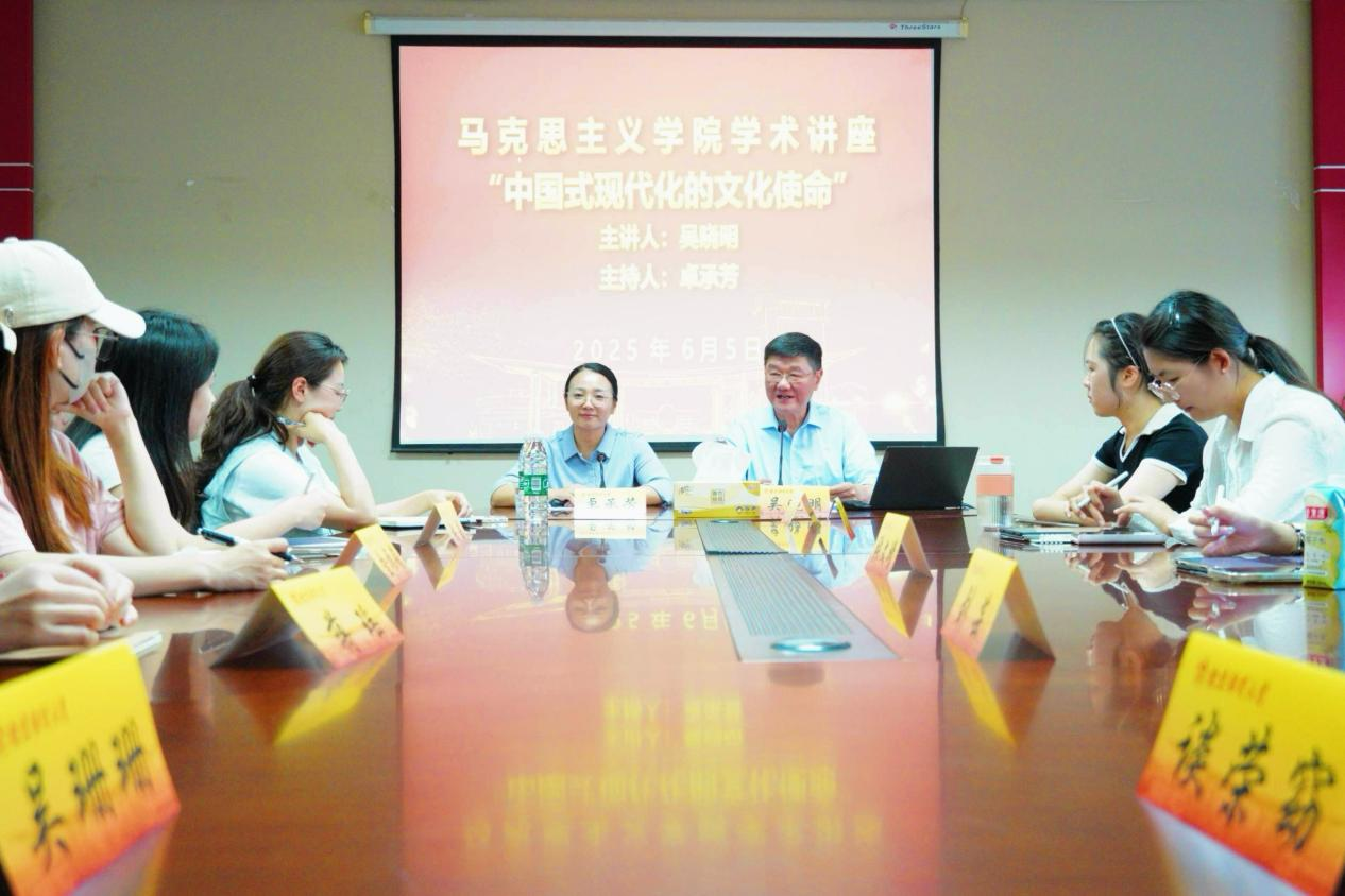 师生作题为“中国式现代化与人类文明新形态”的学术讲座。本次讲座由院长卓承芳教授主持,学院教师代表以及2023级、2024级研究生参与学习。