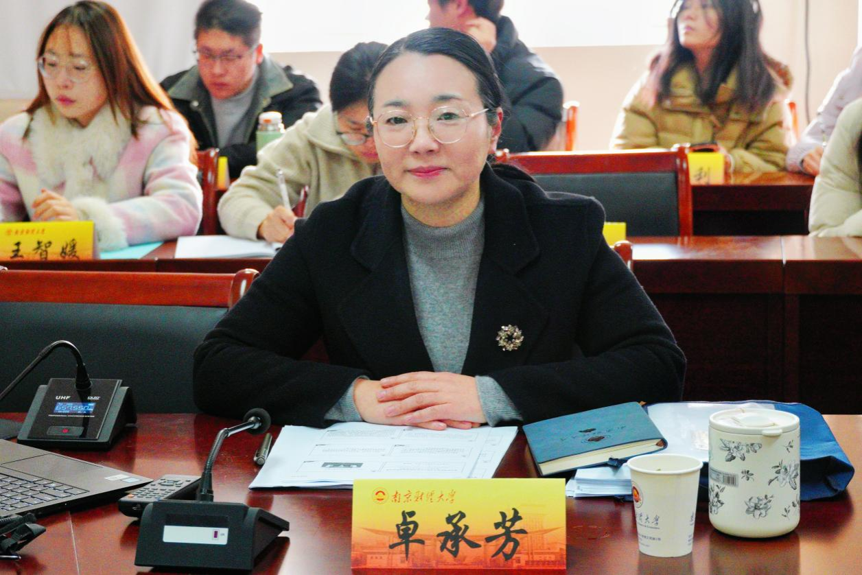 卓承芳院长就讲座作总结发言。她强调颜教授的分享紧扣党的二十届四中全会精神,内涵丰富、指导性强,既系统解读了中国式现代化部署,又深化了对发展规律的认识,为全院师生提升理论素养、助力学院教学科研提供了有力指引。