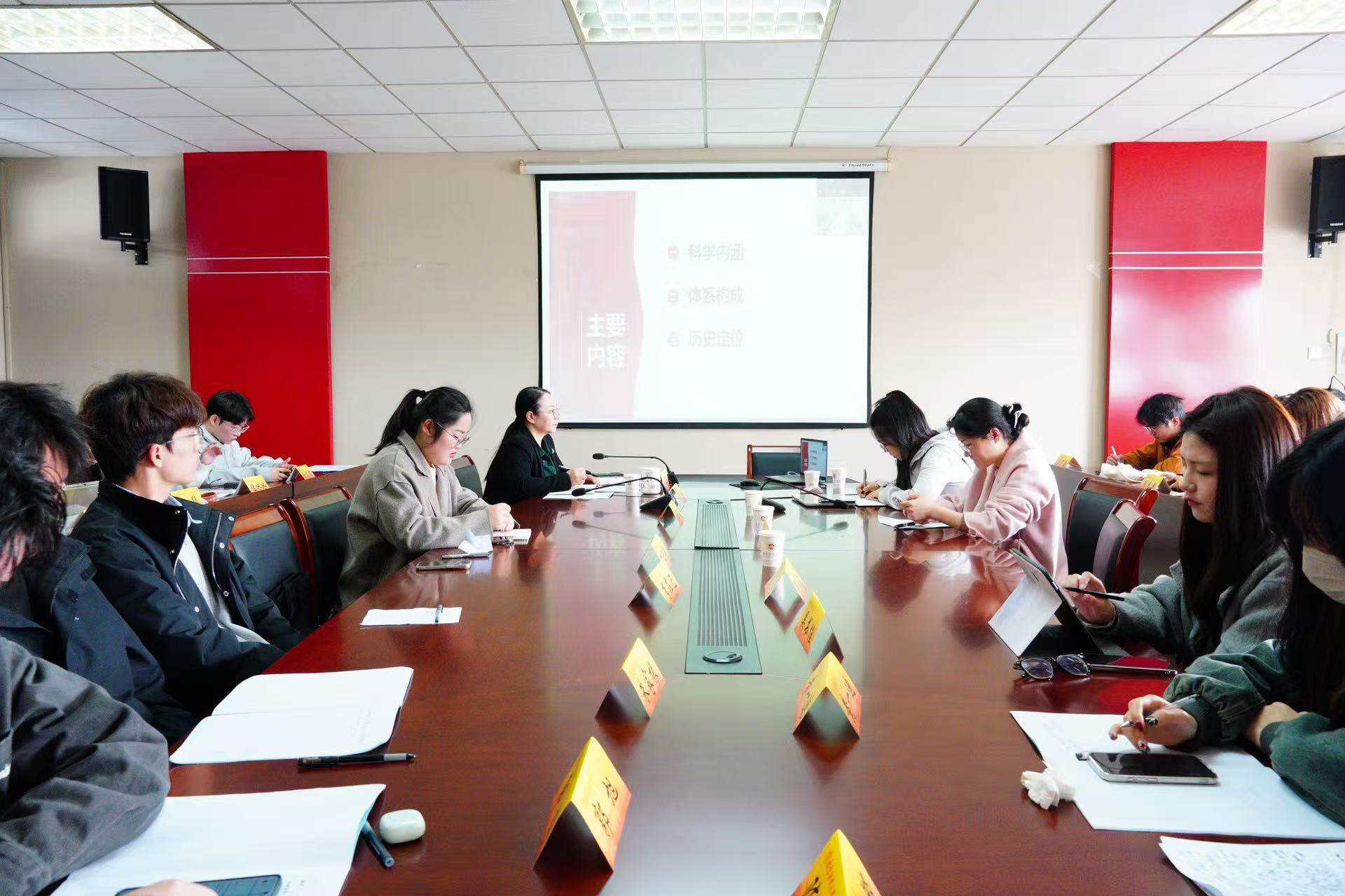 讲座中,王树荫教授围绕主题,从理论逻辑、历史逻辑与实践逻辑出发,系统阐释了习近平新时代中国特色社会主义思想体系化学理化的核心内涵、发展脉络与时代价值,为师生开展相关研究提供了清晰指引。讲座尾声,卓院长作总结讲话。她强调,全体师生要以此次讲座为契机,坚持学思用贯通、知信行统一,不断提升马克思主义理论研究能力,以扎实的学术成果助力理论学习与学科建设。