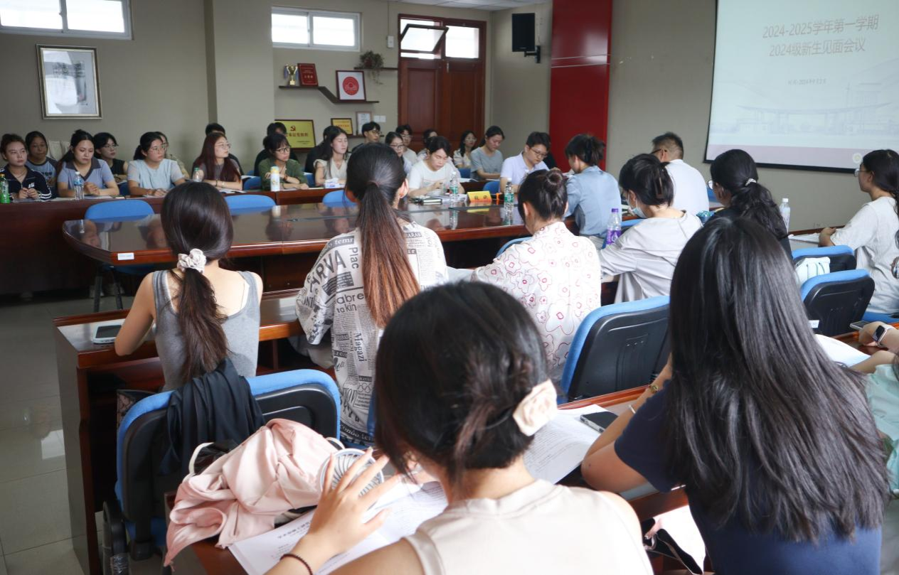 在德正楼508会议室召开2024级研究生培养规章制度与学术道德规范会议,学院院长助理范渊凯、研究生辅导员王晶、研究生秘书张妍以及52书库