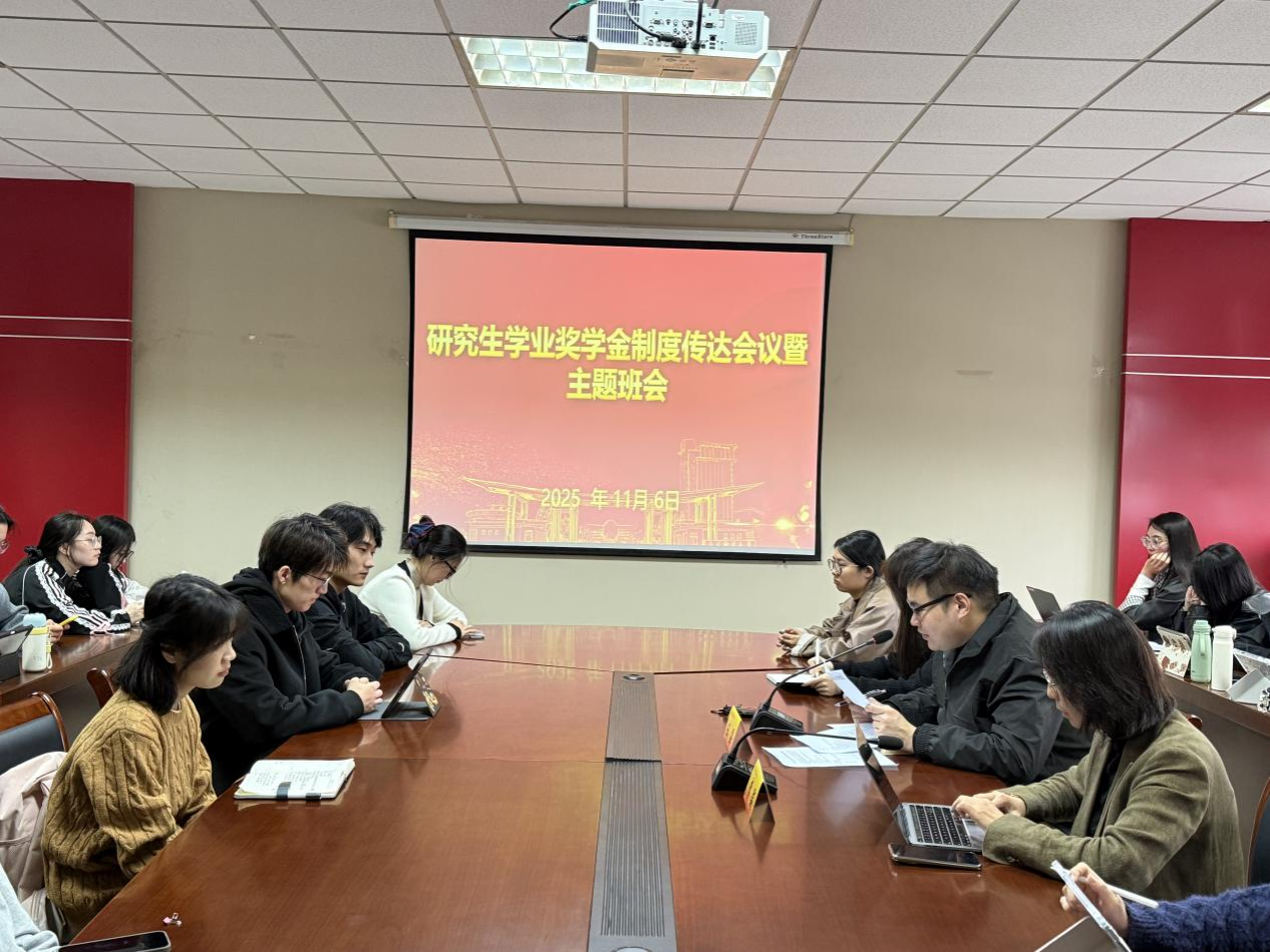 于德正楼508会议室召开研究生学业奖学金制度传达会议暨主题班会,本次会议围绕奖学金评定、党员发展、安全管理等工作展开。会议由学院辅导员王晶主持,院党委书记李骏以及23级、24级全体研究生参与了此次会议。