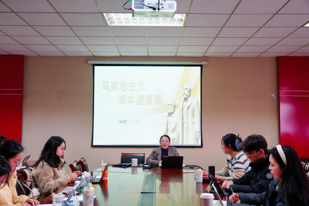 院长卓承芳教授在德正楼508会议室,为学院2024级全体研究生作题为“马克思主义资本速度观”的学术讲座,引导学生深入研读马克思的经典著作,挖掘其中蕴含的核心要义与思想内涵,帮助他们更好地理解和把握马克思主义的基本原理及其当代价值。
