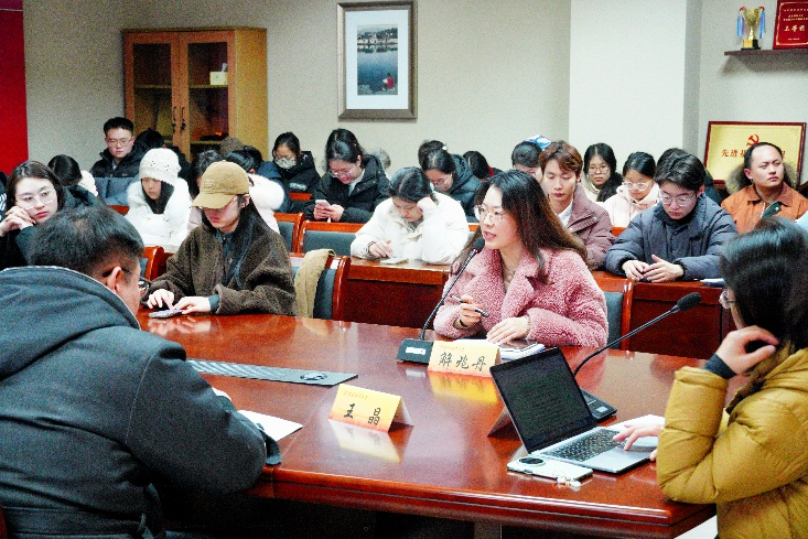 解兆丹副院长(挂)就近期硕士学位论文选题与预答辩相关事宜与同学们做了深度交流,她要求同学们从课程论文到学位论文,均须严守全流程学术规范,选题应立足 “小切口” 破题。