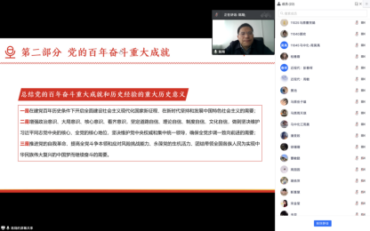 李飞老师以“学史增信:牢筑信仰之基”为题,以我们党改革开放四十年来取得的伟大成就和伟大事业为要点,提出今天我们开展党史学习教育,就是要深刻领悟党的理论成果和思想伟力,牢固树立理想信念。