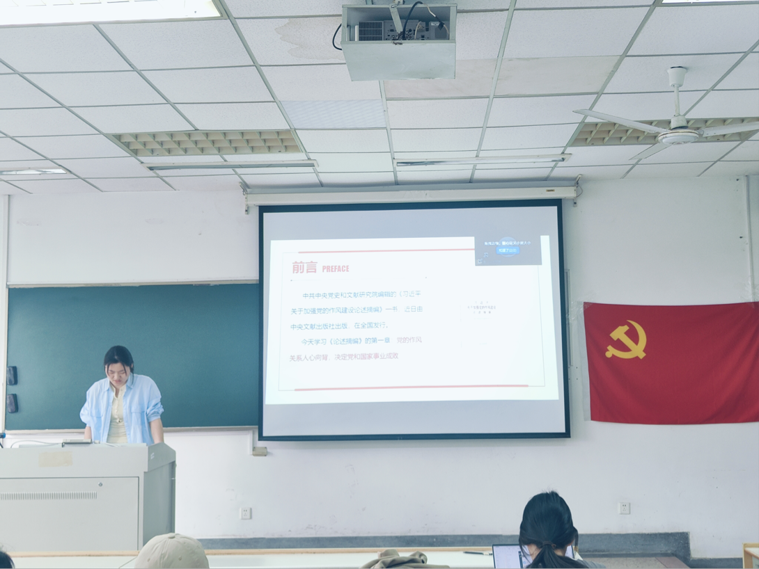 4月10日下午,52书库 研究生党支部在德正楼204开展学习活动,集中学习《习近平关于加强党的作风建设论述摘编》。会议由党支部书记付菁菁主持,纪律委员沈丽君同志领学,支部全体党员参加会议。